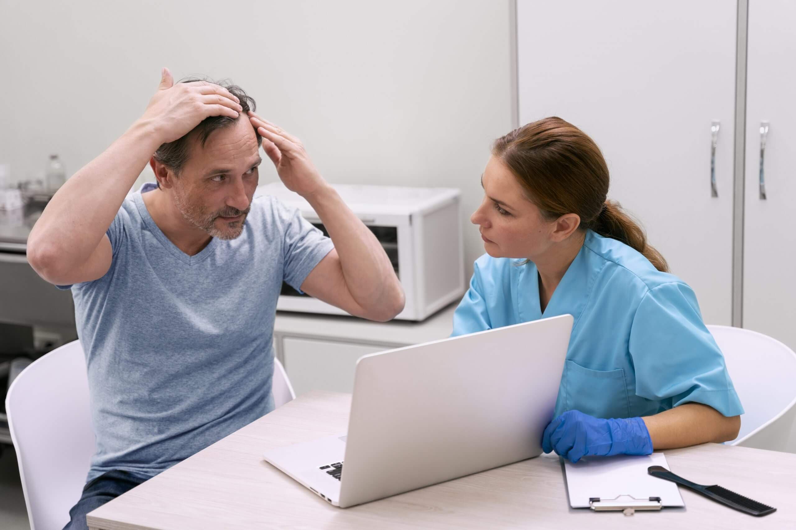 Médicos que atuam na área de cirurgia plástica são capacitados para avaliar o quadro clínico, bem como examinar a saúde dos fios da área doadora do paciente.