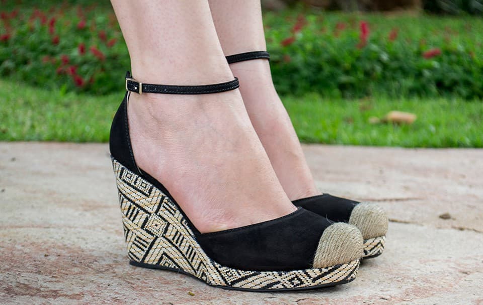 Espadrille: As sandálias Espadrille são uma peça curinga, sendo mais procuradas durante a primavera e o verão. Com saltos completos, formatos que trazem maior proteção aos pés e amarrações no tornozelo, elas confortam e, ao mesmo tempo, dão um charme a mais ao look. Dentre seus vários modelos, é possível encontra-las coloridas, estampadas ou em nude. Se a roupa a ser combinada com elas for estampada ou muito colorida, prefira um modelo mais clássico e de cor única para equilibrar o visual. Prefira as sandálias Espadrille para eventos, festas ou mesmo para ir ao shopping.